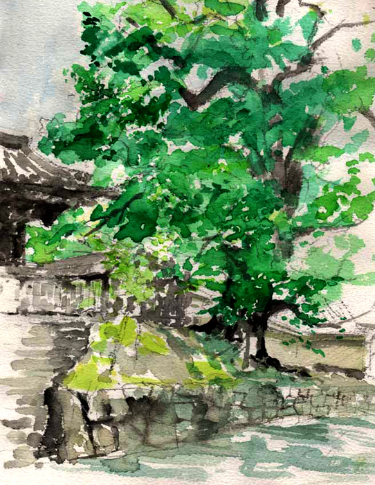 | 本日も、やはり古い写生帖から見つけたもの。京都、東山山麓に父祖の墓所がある。京阪四条の駅から四条通りを、万屋(通称一力茶屋)、祇園石段下、円山公園の枝垂柳の下をくぐって名物「海老芋と棒鱈」屋、坂本龍馬、中岡慎太郎像、織田有楽斎ゆかりの料亭を過ぎて、吉水草庵、鐘撞き堂までが幼い頃からの墓参の道筋であった。帰り道はいろいろと、寄り道するのだが、一度などは鐘撞き堂から更に「ほーたるのいわや一丁」と云う道しるべのある山道を進んで、将軍塚の展望台まで登ったことがある。午前の日を背に京都の街の俯瞰は美しいものであった。概ねは、粟田口から京都市美術館、国立近代美術館と云うコースか、知恩院新門から白川沿いに辰巳の稲荷近くを通って京阪四条、松葉の鰊蕎で午にするというのがお定まりである。 知恩院三門の前から、平安神宮の方へ歩いて、青蓮院の大楠を描きました。安井曾太郎も「粟田口風景」で描いていました。 Madonna seriesはお休み。 |