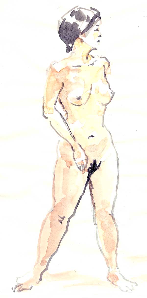 昨夜、大阪梅田にある、クロッキー会ミケランジェロに参加しました。久しぶりにプロの美術モデルさん(彼女はまさにプロでした。)を描くので緊張しましたが。なかなか、心地よい緊張でありました。水彩でで描いたので周囲に迷惑をかけたかもしれません。