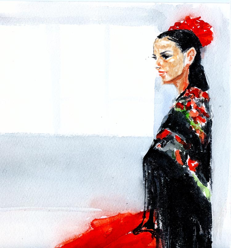 フラメンコダンサーによる固定ポーズ。20分4回。