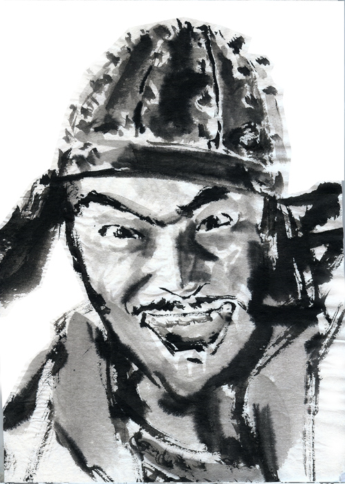 | 黒澤明氏の映画は悪くない。「組織」「抵抗」「戦術」「闘争」そういったものを一目瞭然に絵解きしてくれる。ただ、あまりにも、その絵の輪郭線が強くしっかりしているものだから、いささかひるむ。やはり青春の映画だ。この歳になると小津安二郎氏の世界の方が居心地がよい。耄碌というものでは無いと思う。年齢に応じた「戦術」「闘争」が在るのだ。 書道の半紙に墨だけで5分ほど |