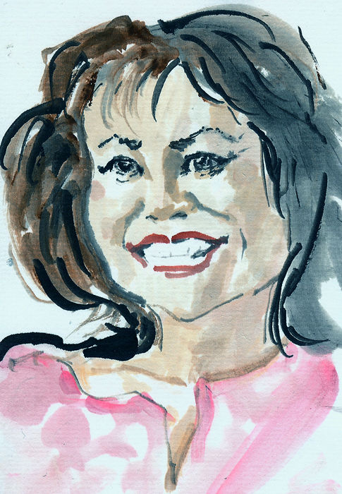 | 大阪天満宮「てんま天神梅まつり」です。いよいよ本日、午前10過ぎぐらいから総門の軒先をお借りして似顔絵屋日思庵開店致します。 ま、ご婦人も描けるという見本にひとつ載せます。 |