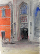| 三休橋筋、 浪花教会。 赤い煉瓦の壁が 渋川ビルヂング。 |