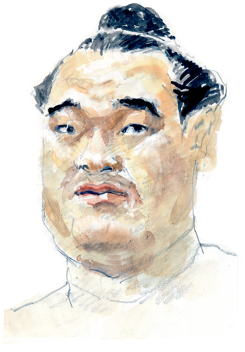 元小結、高見盛関。 先ずは、おつかれさま。 高見盛関のお陰で どれほどお相撲が たのしいものになったか 知れません。その功績は偉大です。 葉書大メモ用紙に鉛筆、淡彩。 夕方6時のニュースで優勝を知って慌てて描いた。 絵の具が乾かないままスキャンしたら 薄い更紙なので皺になった。 昨年は中日ドラゴンズ似顔絵展で 中日新聞社特別賞 を頂きました。
