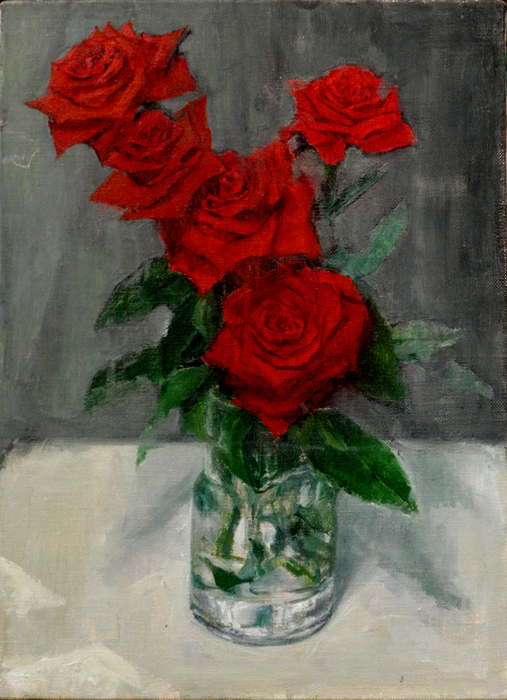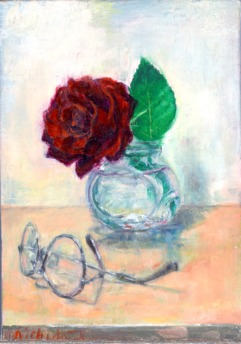 | 近所の花屋で、日曜の夕方買った。安かった。 年頭の個展の為に昨年末、描いた。 手前に、老眼鏡を描き添えた。 絵を描くのに老眼鏡が必要なって久しい。 対象は裸眼で見て,Canvasは眼鏡越しに見なければならない。 なんと煩わしいことか! 静物画の伝統的な主題であるVanitas あるいはMemento moriの寓意である。 耳順近い身にはMemento moriは切実な主題である。 御参詣のみなさまの平和とご多幸を お祈りしながら 天満天神梅まつり、 似顔絵屋「日思庵」。 ご奉賛、無事、千秋楽。 ご来店のみなさま。ありがとうございました。