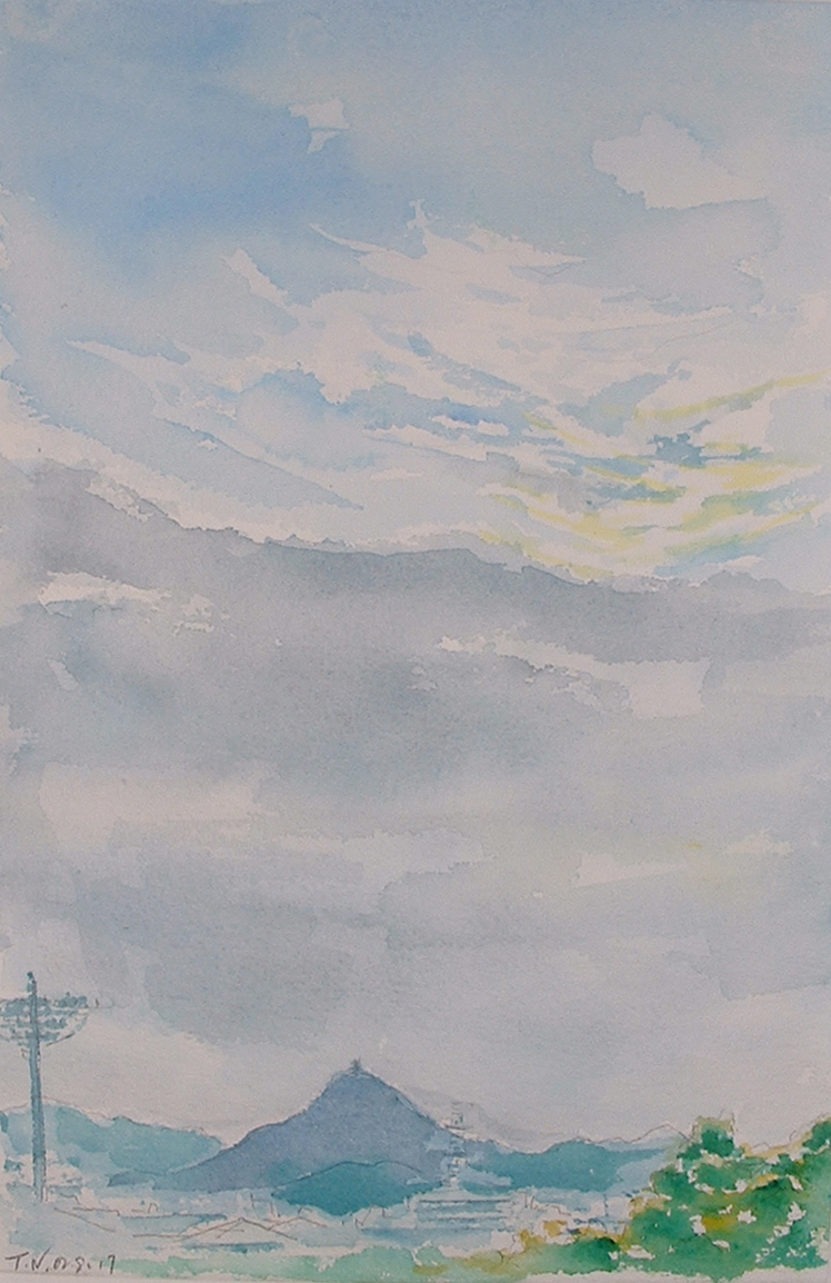 上は12年前、岐阜の街から描いた稲葉山城である。確か台風が近づいていた。