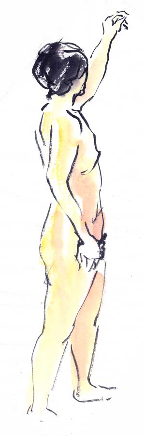昨夜、大阪梅田にある、クロッキー会ミケランジェロに参加しました。久しぶりにプロの美術モデルさん(彼女はまさにプロでした。)を描くので緊張しましたが。なかなか、心地よい緊張でありました。水彩でで描いたので周囲に迷惑をかけたかもしれません。