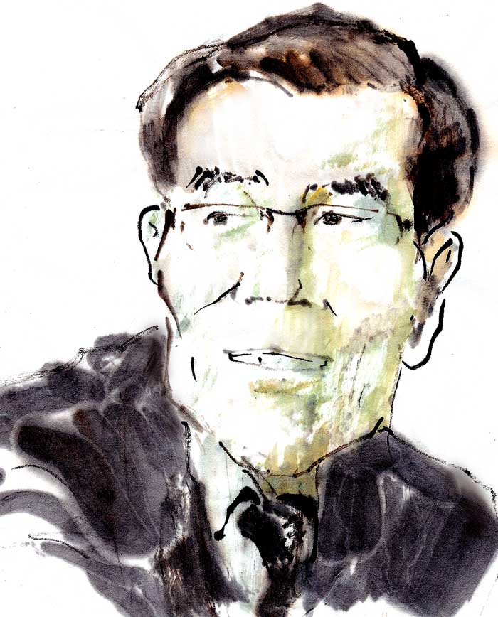 | ただ、多くの大阪のひとびとが柏手を打ち手を合わせ祈る天満の天神さんのご門前で、2月13日、20日、27日の各日曜日、道行く人の似顔絵を描かせていただく。 |